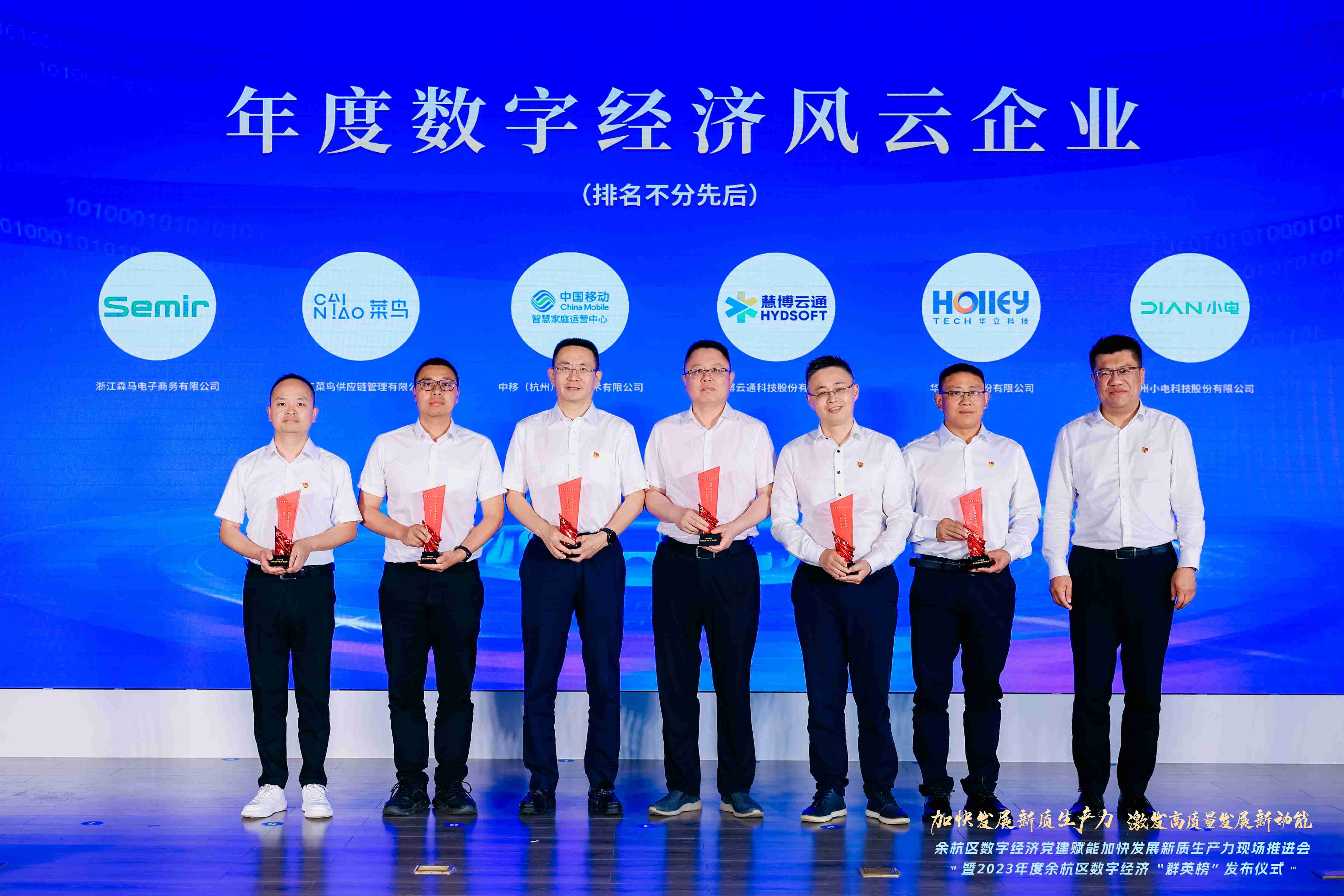 经企业申报、专家评审、公开投票,报请中共杭州市余杭区委社会工作部(区委两新工委)、中共杭州市余杭区经济和信息化局委员会审核,2023年度余杭区数字经济“群英榜”评选活动产生。88体育凭借自身扎实的技术实力和在信息技术服务领域丰富的技术积累,荣获“2023年度余杭区数字经济风云企业”,88体育董事长余浩与中国移动杭州、菜鸟等其余5家获奖企业代表一同上台领取奖项。