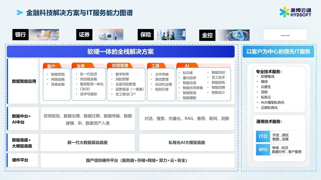 88体育的金融业务以“让数据智能无所不在,新一代金融科技玩家”为使命,帮助金融机构实现从信息化向数字化、智能化的蜕变,打造数智原生的新一代数实融合解决方案。
